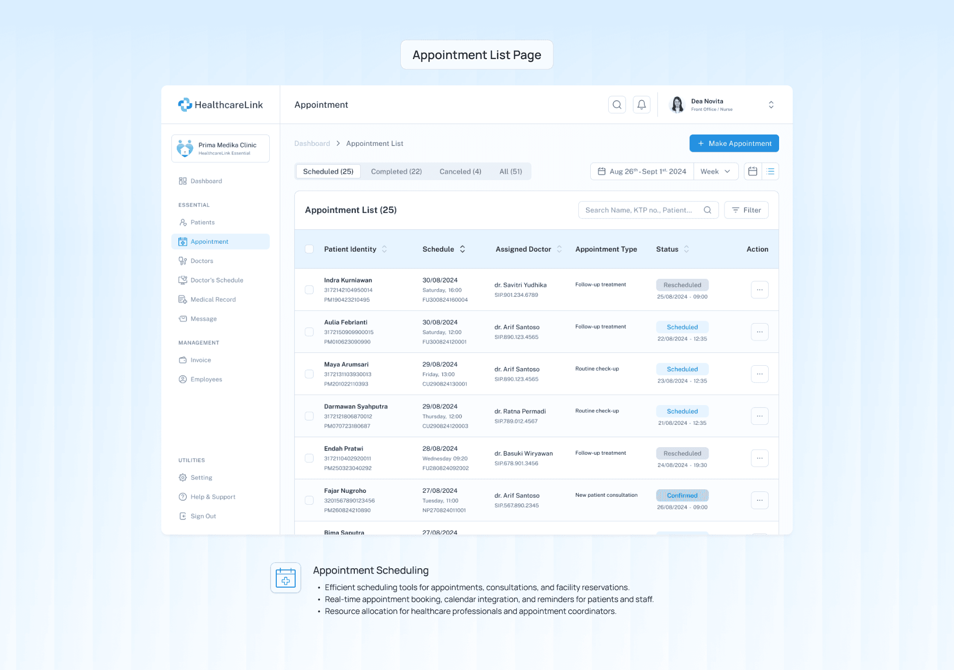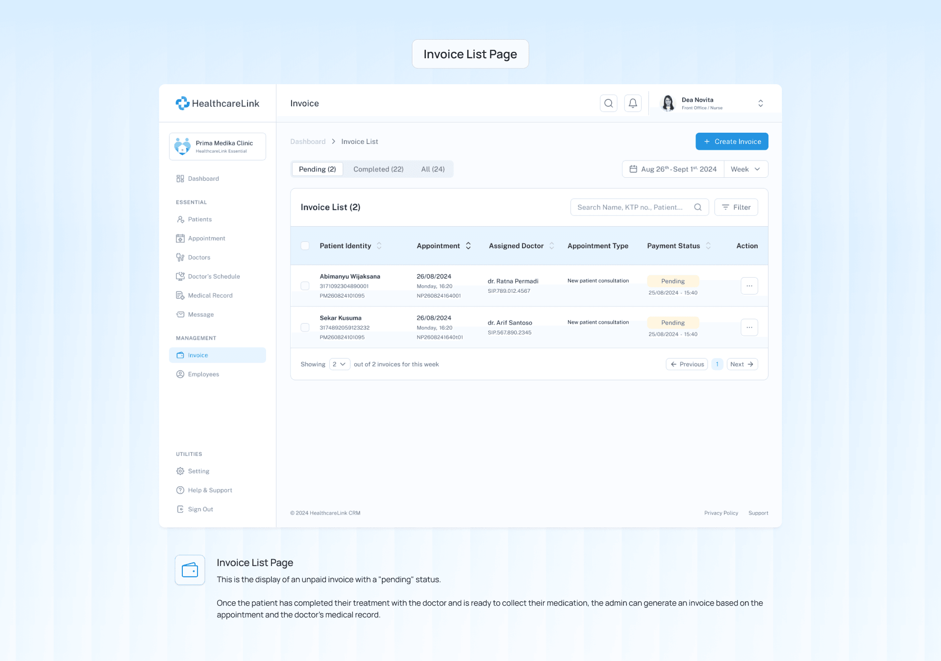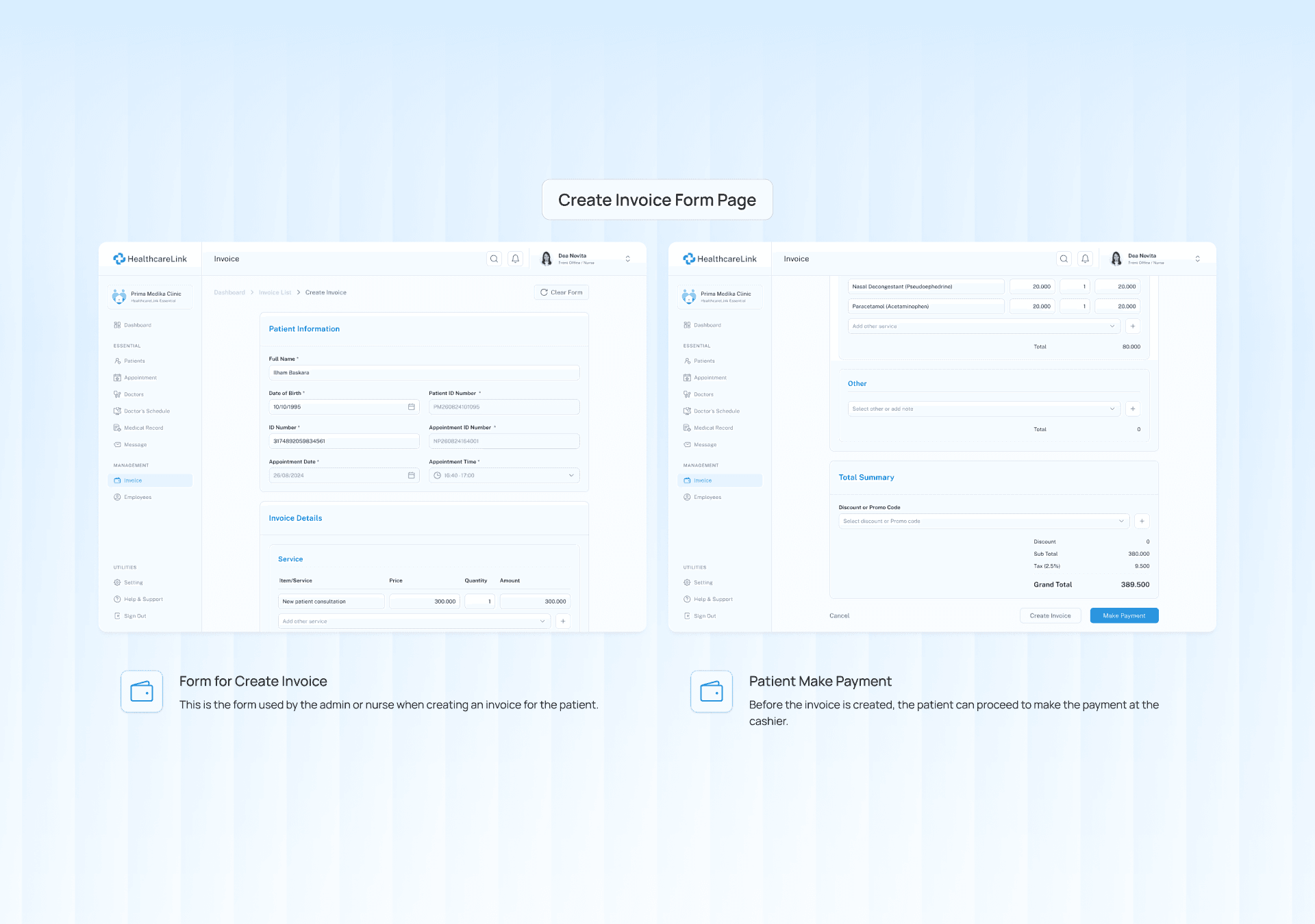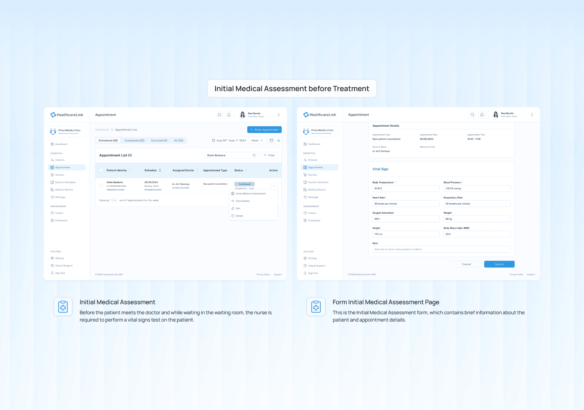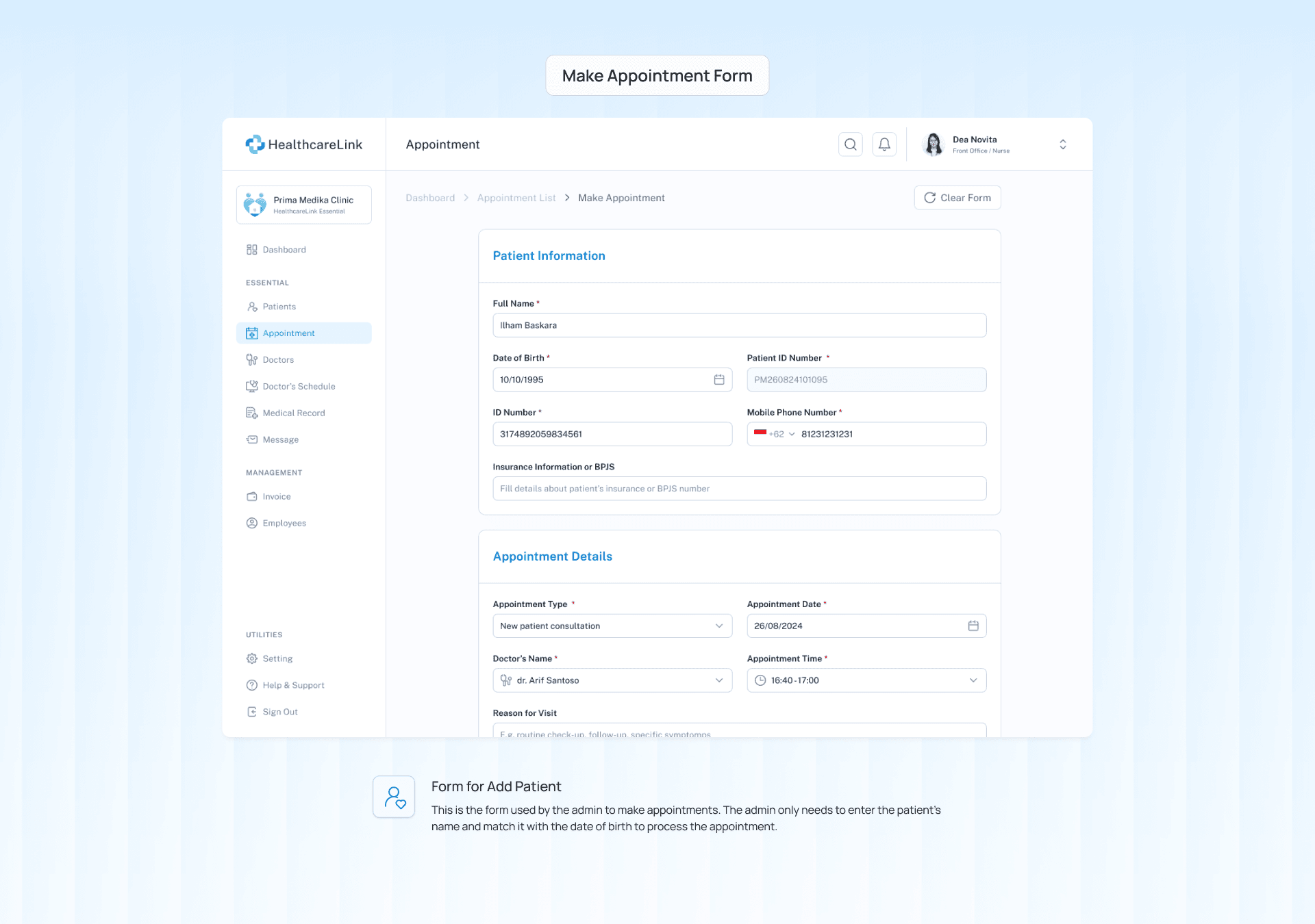 The outcome was a Clinic Management System designed to enhance the operational efficiency of clinics like Prima Medika. Usability testing showed promising results, with 96.65% of participants successfully completing tasks such as managing patient appointments, accessing medical records, and processing payments. Participants expressed that the streamlined system would significantly improve their workflow by simplifying administrative tasks, reducing errors, and boosting staff productivity. By integrating core functionalities into a single platform, HealthcareLink demonstrated the potential to transform fragmented processes into an organized, efficient workflow—ultimately leading to better care and an improved patient experience.