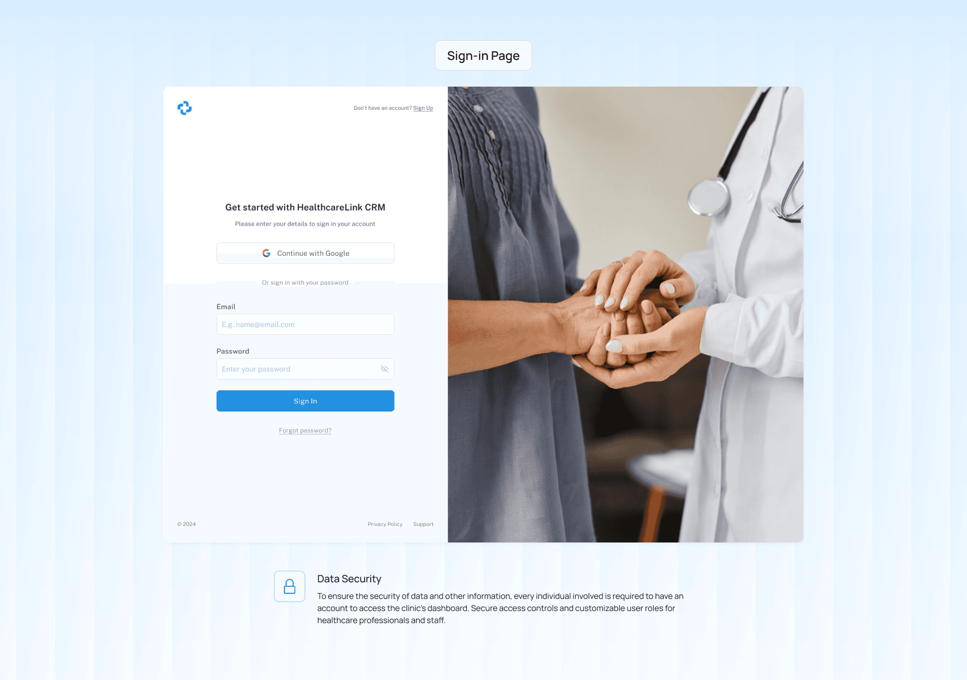 Secure access controls and customizable user roles for healthcare professionals and staff.