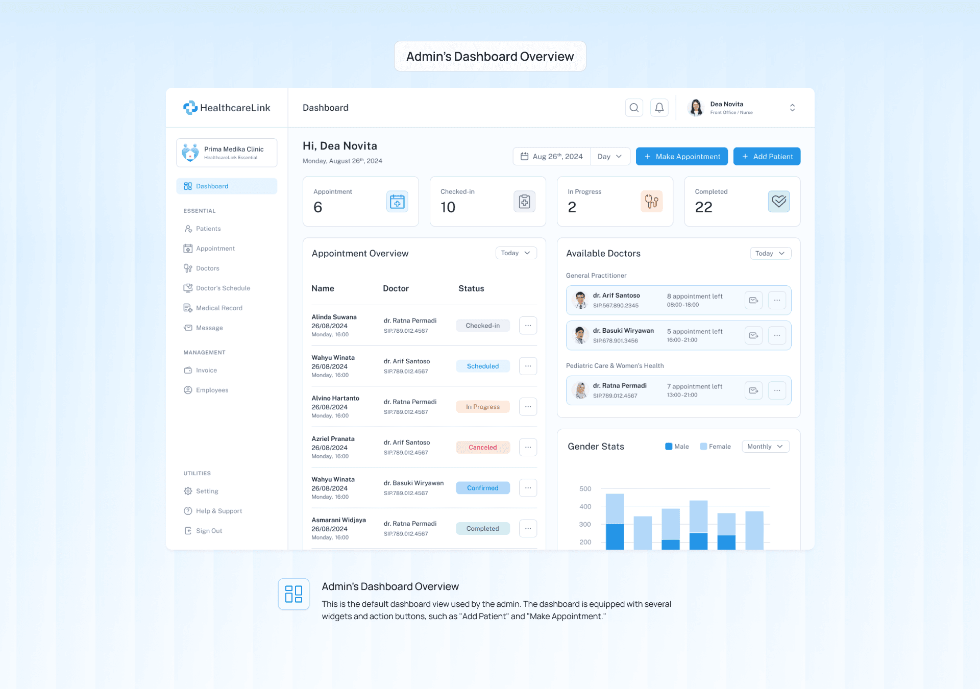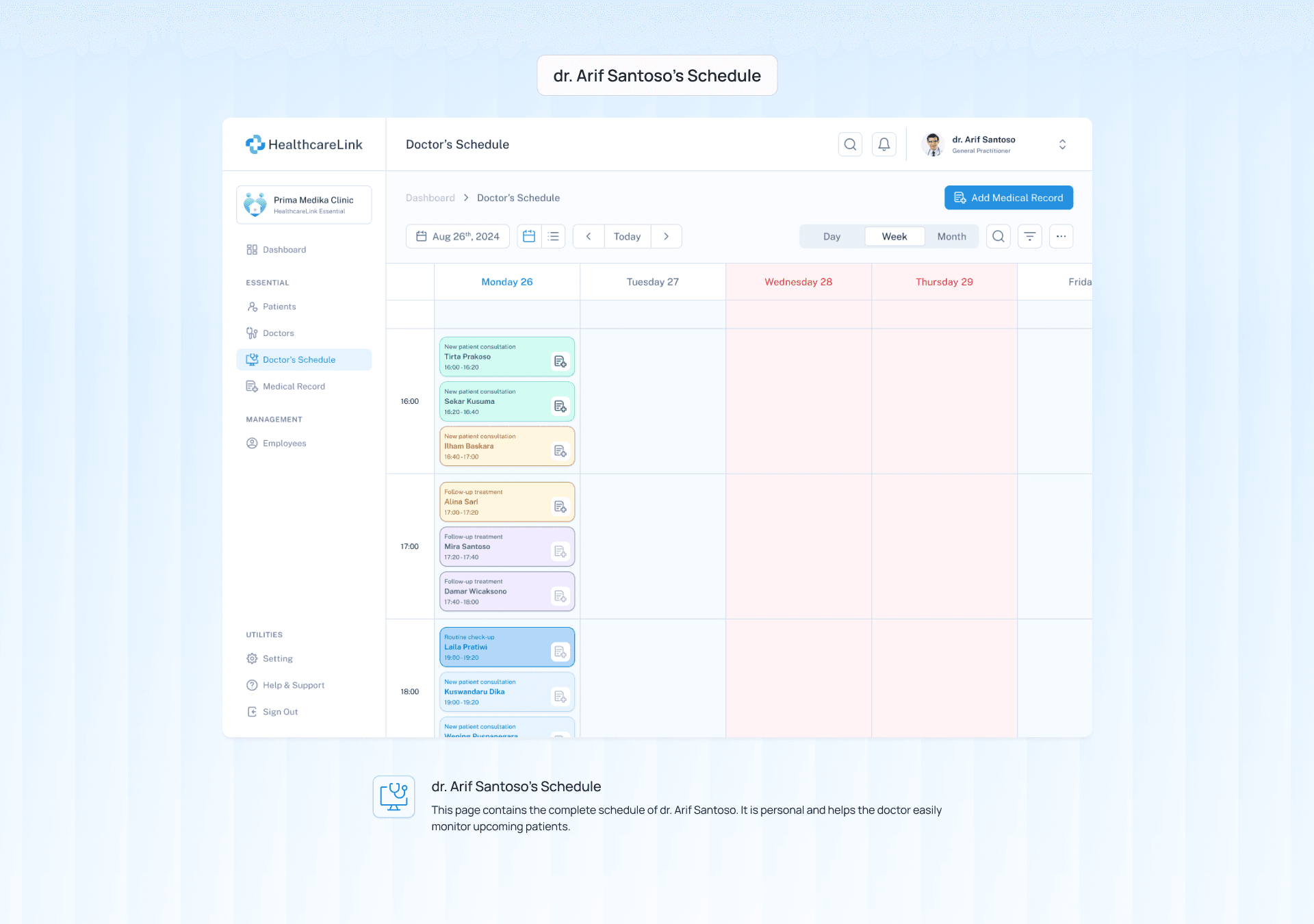 HealthcareLink CMS (Clinic Management System) is an MVP (Minimum Viable Product) designed to provide clinics with the most essential features they need to operate efficiently. The key features include: