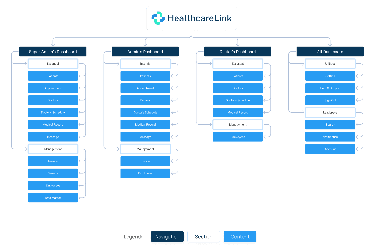 Designing a structured framework for the HealthcareLink CMS, enabling users to easily access and manage information, enhancing overall usability.
