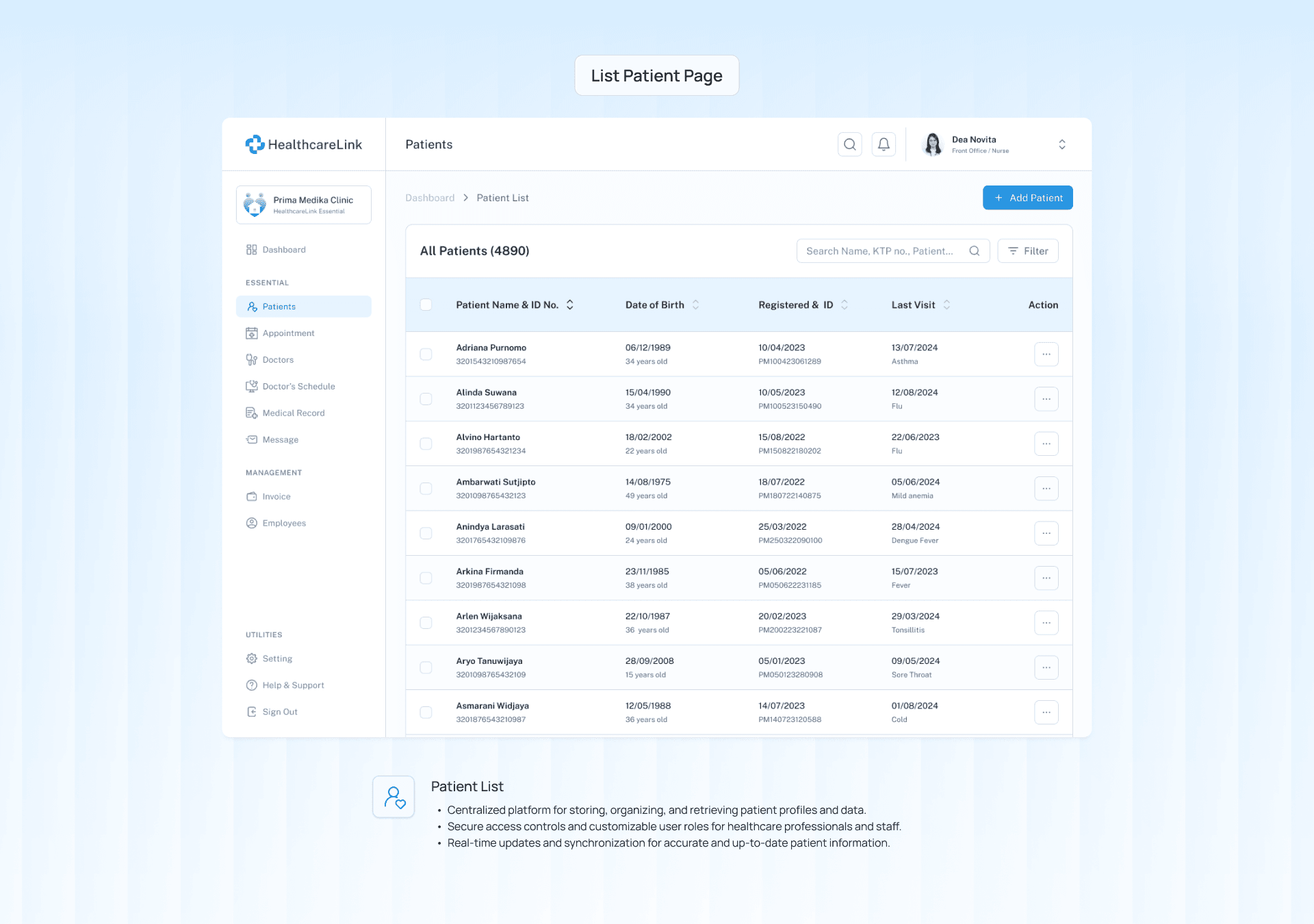 Real-time updates and synchronization for accurate and up-to-date patient information.