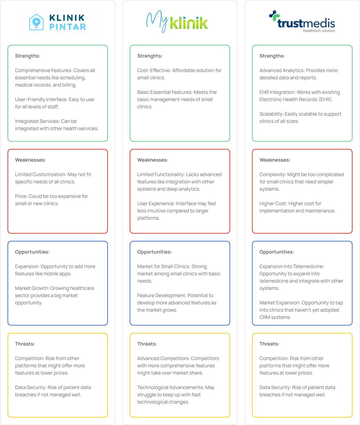 SWOT Analysis of competitors to evaluate their strengths and weaknesses.