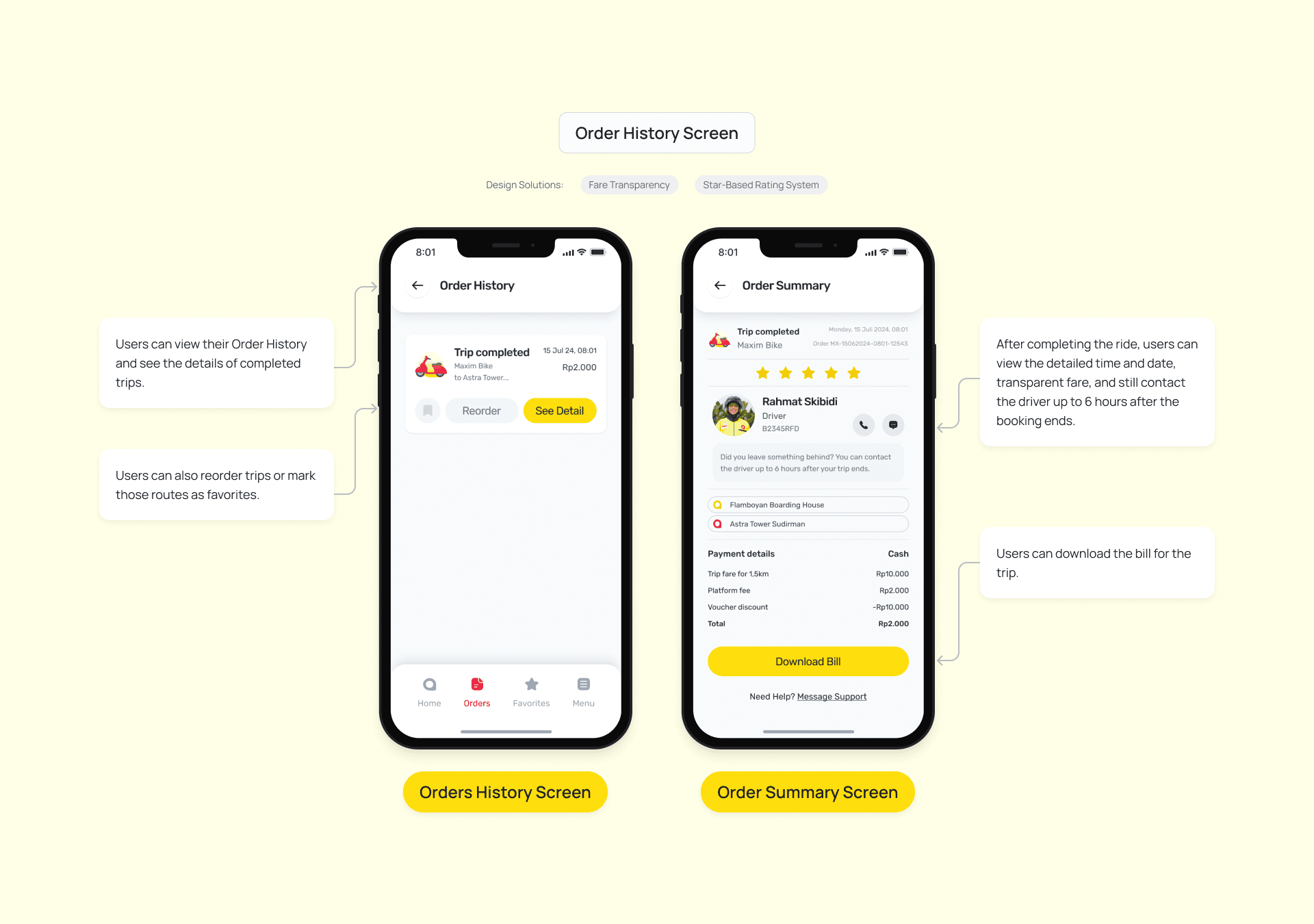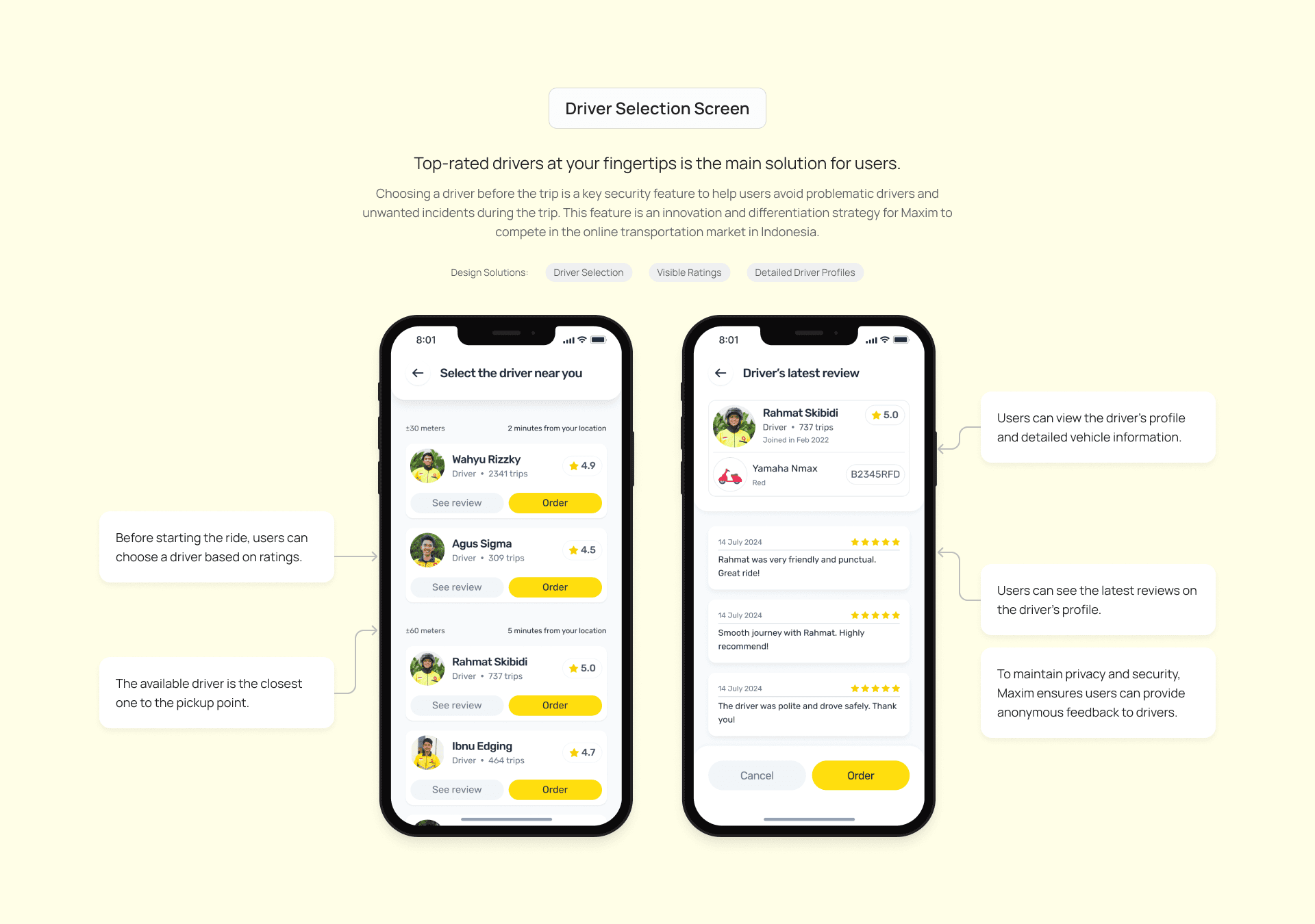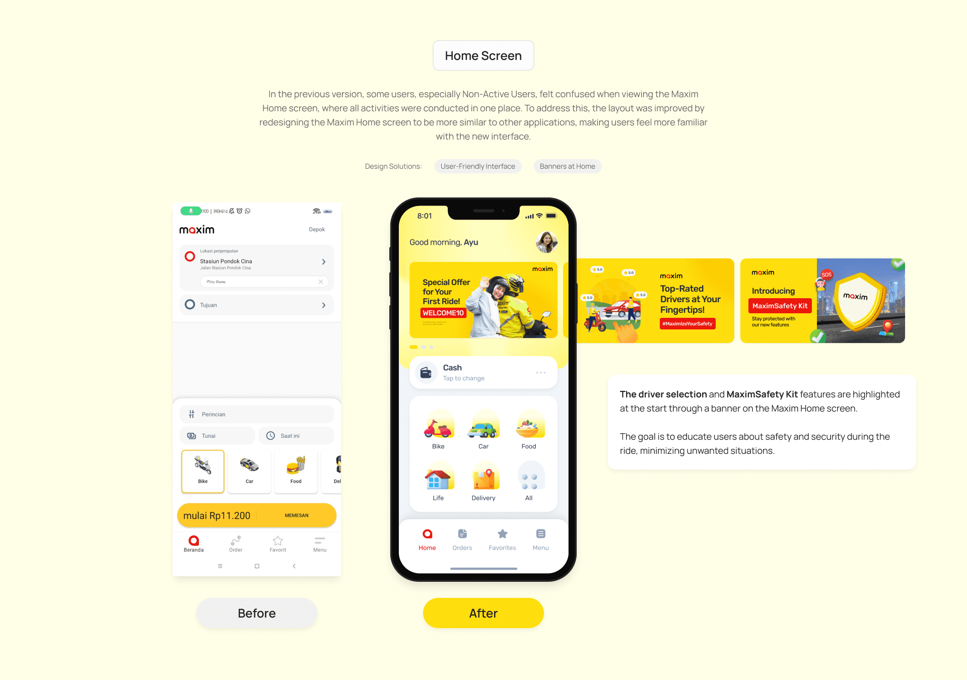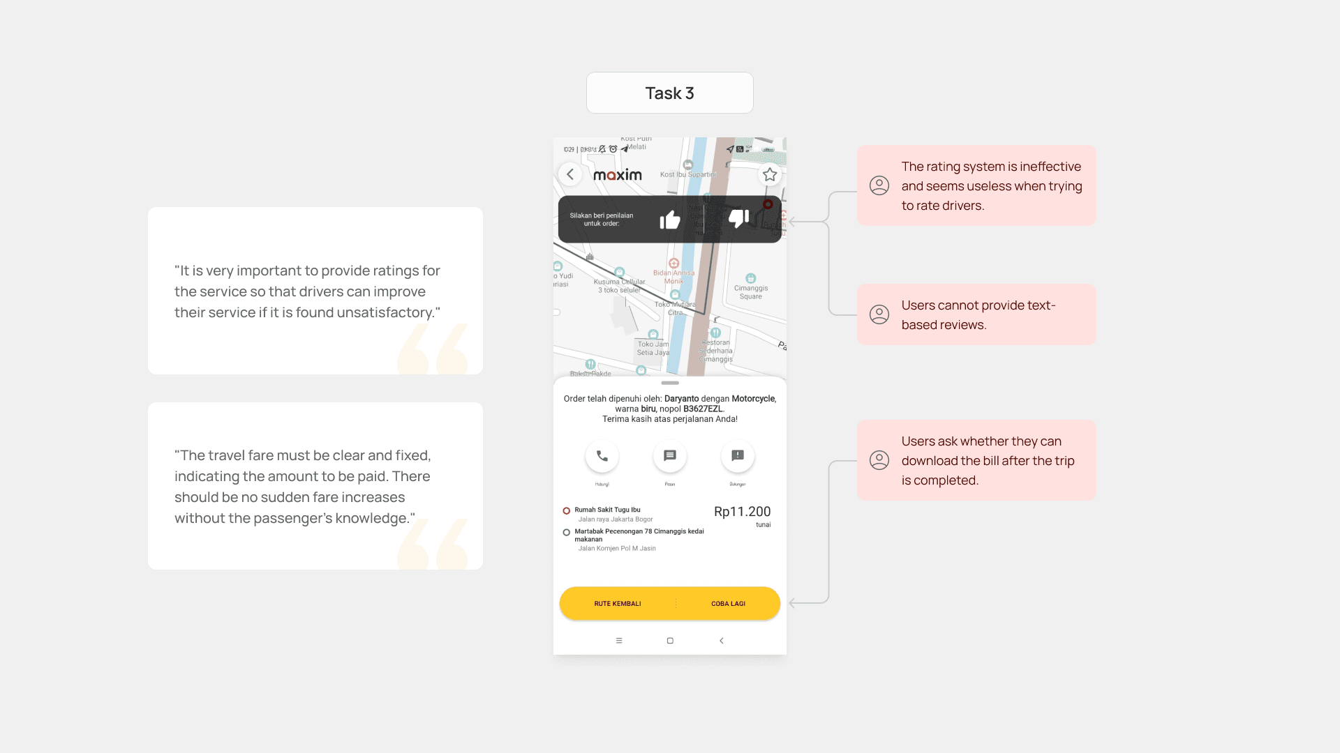 This project was about more than just redesigning an app—it was about restoring trust. By listening to user concerns and addressing them head-on, this improvement could hopefully put Maxim in a stronger position to compete in the Indonesian market. The combination of affordability and safety makes Maxim a compelling option for riders who value both cost and peace of mind.