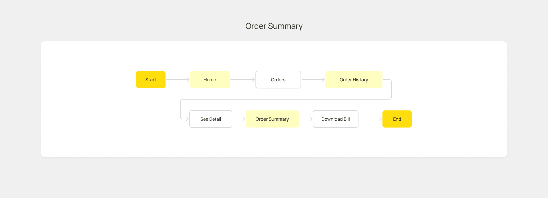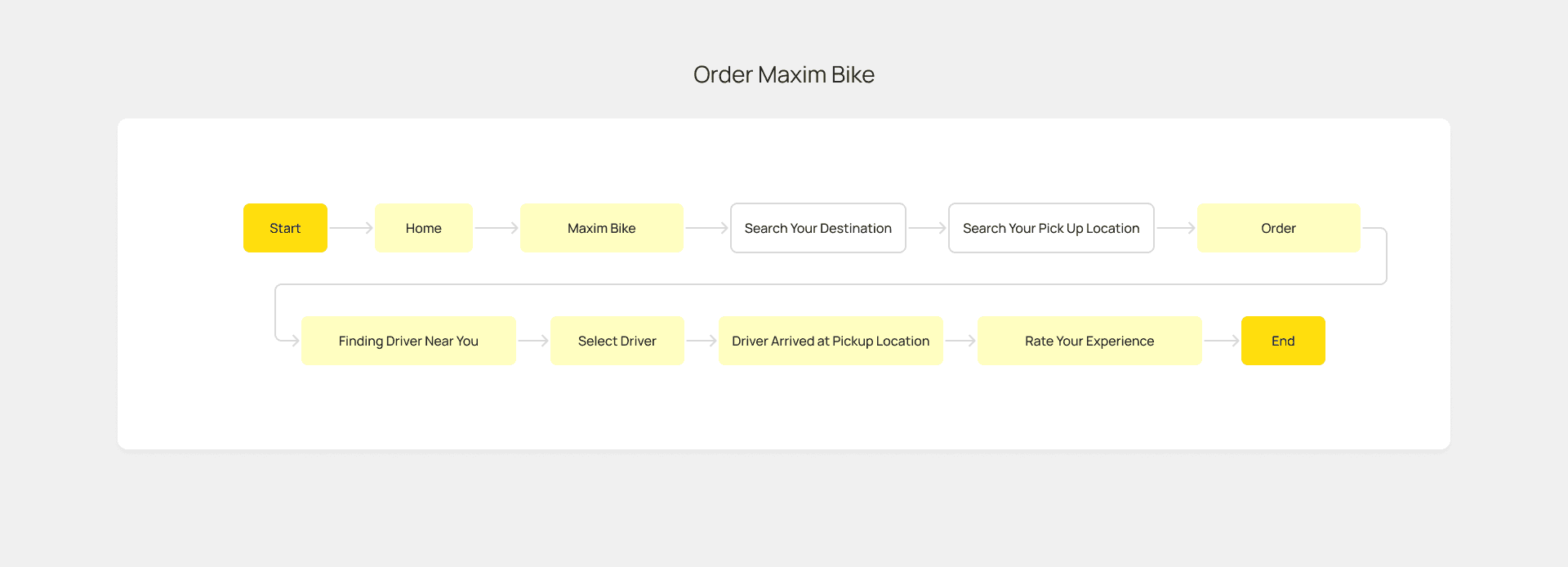 The User Flow outlines the steps users take, from signing up to completing an order, ensuring a seamless experience that aligns with their needs and efficiently leads to the order summary in Maxim.