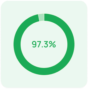 The average success rate is 97,3%, highlighting the success of the product improvements, which are easy to use for users.