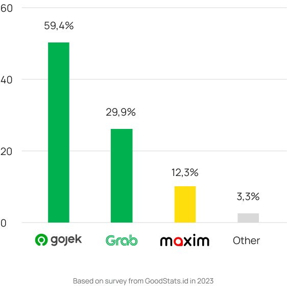As a newcomer from Russia, Maxim, which entered Indonesia in 2018, has become popular with their distinctive yellow jackets, competing with the green jackets of Gojek and Grab. Maxim's popularity is attributed to having the lowest base fare compared to other competitors.