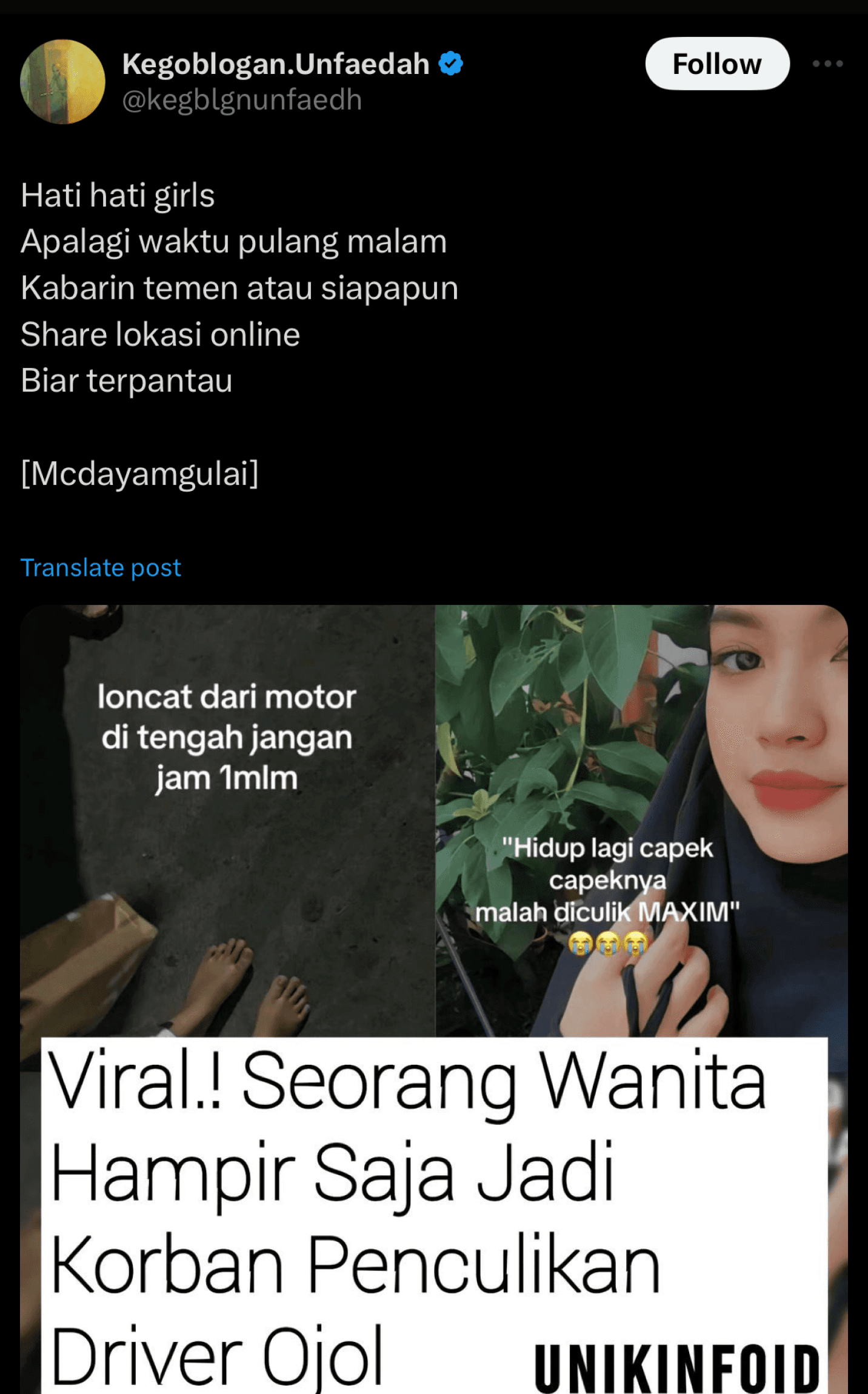 This is actually an opportunity for Maxim. With its value proposition of affordability, these product improvements in safety features and building trust are Maxim's way of trying to innovate and stay competitive in Indonesia's online transportation market.